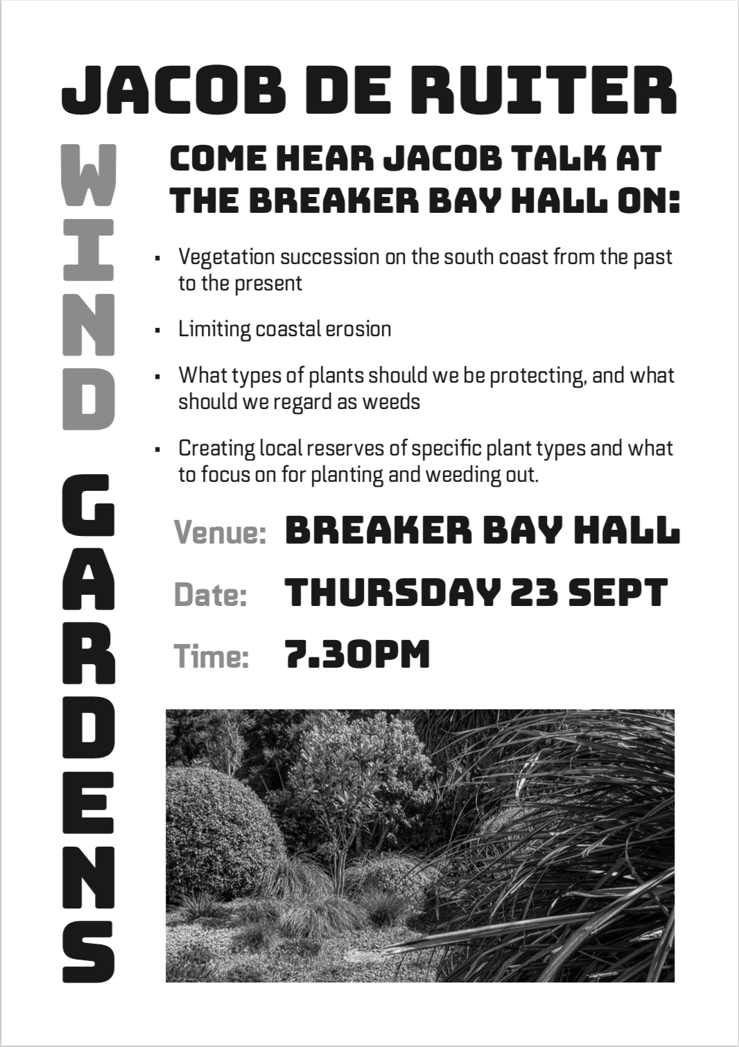 We will be voting in our new constitution, and our special guest is Brad Singh, Manger Transport and Infrastructure WCC. Brad will be attending to answer your burning questions on speeding in the bays and issues with the Breaker Bay Road where coastal erosion is causing concern.